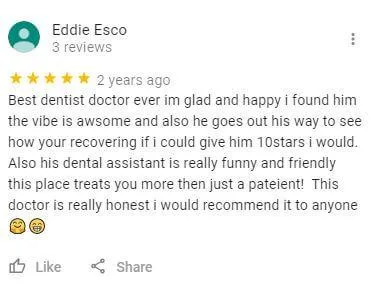 Listen to what they had to say about our business, doctor, and staff.